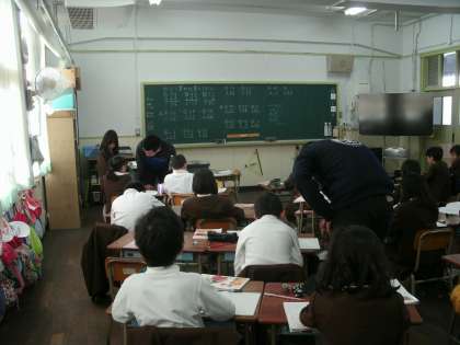 2年1組は、算数の学習をしていました。くり上がりのあるたし算の筆算を計算していました。たくさんの問題を頑張って解いていました。