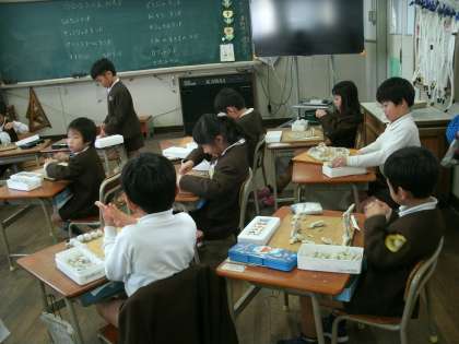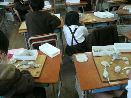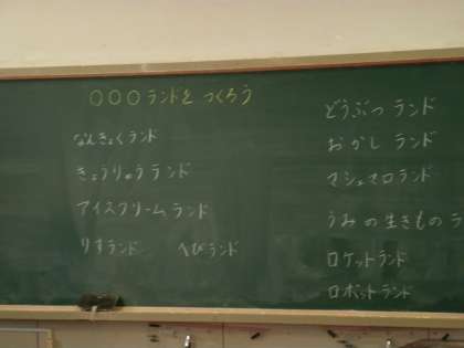 1年1組は、図画工作の学習をしていました。粘土で自分の考えた「○○ランド」をつくっていました。「これはお花畑」「これはお菓子のお城」など、できあがった作品の説明をしてくれました。
