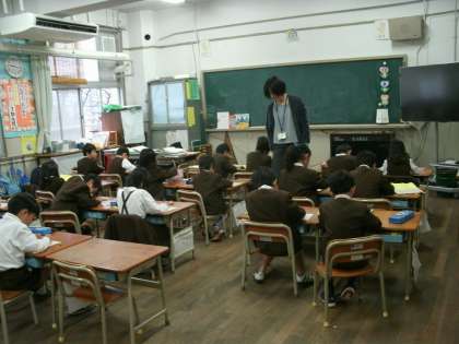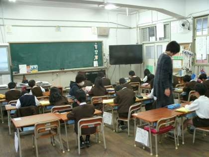 1年1組は、「なまけ忍者」の暗唱を元気よくしていました。その後、さっと気持ちを切り替えて漢字のテストを始めました。