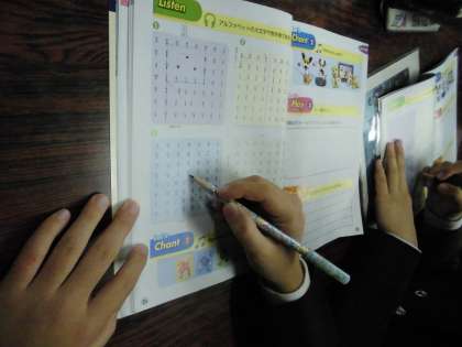 ビルギル先生に英語を教えていただきました。10より大きい数の読み方で、20、30,40・・・の語尾には「ティ」と「ティーン」があることをみんなで発音して確かめました。次にいろいろな数字の発音を聞いて、教科書にチェックしました。最後にWhat is this?」の学習で、様々なものの英語の発音を習いました。今のこども達は、今の大人よりも日常で英語を使う機会が増えることが予想されます。楽しみながらしっかり習得できるようにがんばってほしいです。