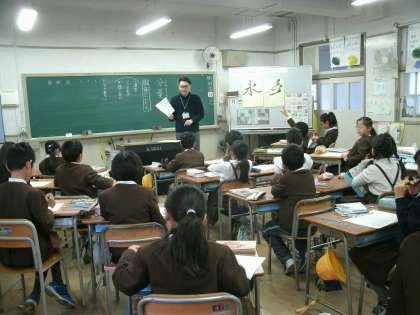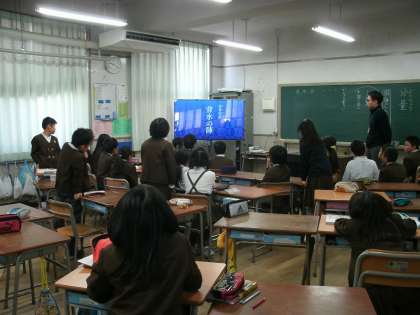 4年1組は、国語の学習をしていました。国語のプリントをした後、映像を見ながら「背水の陣」の言葉の意味や成り立ちを学習していました。