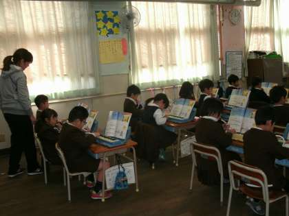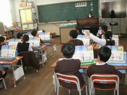1年2組は、音楽の学習をしていました。けんばんハーモニカで「きらきらぼし」を演奏していました。