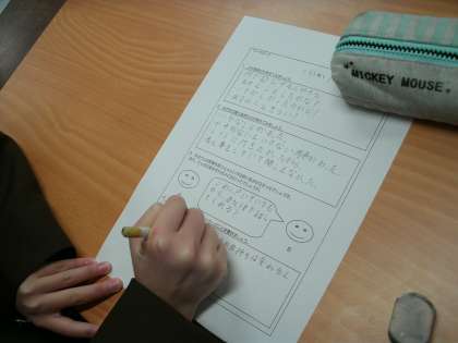 4年1組は、「言葉で伝えることの大切さ」を知るためにアサーショントレーニングをしていました。