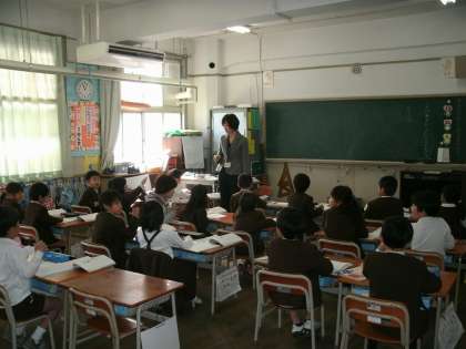 1年1組は、国語の学習をしていました。「ことばあそびうたをつくろう」を学習していました。動物の鳴き声を確認しながら「もうもう うし があがあ あひる …」を参考にして自分でことばあそびうたを考えていました。
