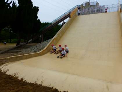 おべんとうの後は、遊具で遊びました。大型滑り台は、大人気でした。