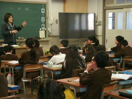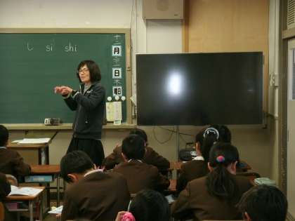 3年生は、ローマ字の練習をしていました。ヘボン式の書き方について担任の先生の説明を聞いていました。練習は今日の宿題だそうです。