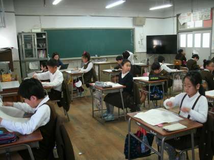 4年2組は、算数のしんだんをしていました。すらすらと答えを書き込んでいく児童や悩んで鉛筆がとまっている児童などそれぞれですが、2学期に学習した内容を思い出しながら取り組んでいました。