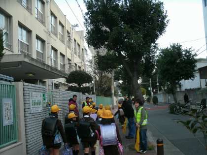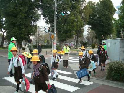 PTA地域委員会の皆さんによる登校時の交通安全指導2日目です。水曜日には、尼崎信用金庫の方々も交差点に立って見守り活動をしてくださっています。ありがとうございます。
