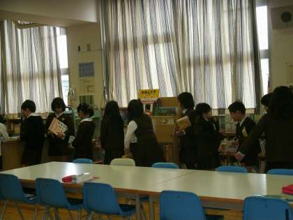 2年1組は、図書室で本の返却をしていました。普段は1冊ですが、冬休みには2冊借りることができました。