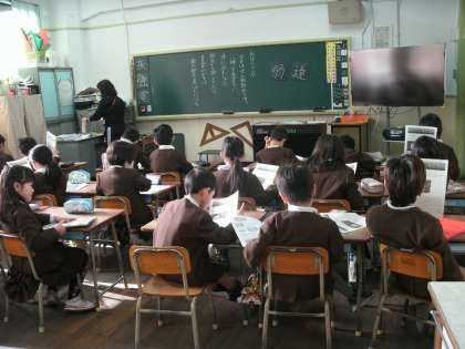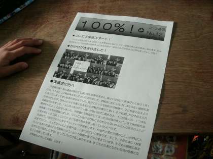 2年2組は、担任の先生から配布された学級通信「100%」を読んでいました。