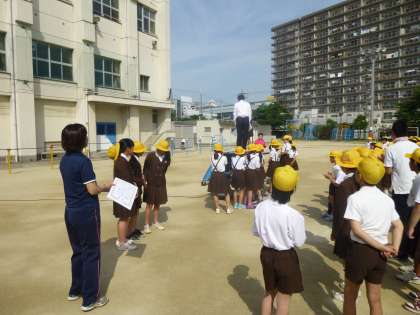 昨日、港区子ども会親善ソフト・キックベースボール春季大会が開かれましたが、磯路連合子ども会のキックベースボール部・ソフトボール部とも3位になりました。その成果を称え、今日の児童朝会の時間に表彰を行いました。