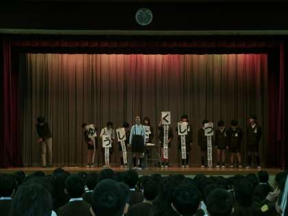 1月22日から26日は給食週間です。今朝の児童朝会の後半は、健康委員会による給食週間についての発表と、給食調理員さんへのお礼の会を行いました。