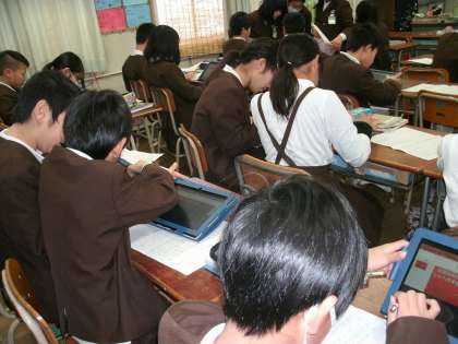 5年生は、国語「伝えよう、委員会活動」の学習をしていました。これまで行ってきた委員会での活動を、4年生に伝えるためにタブレットを使ってまとめていました。