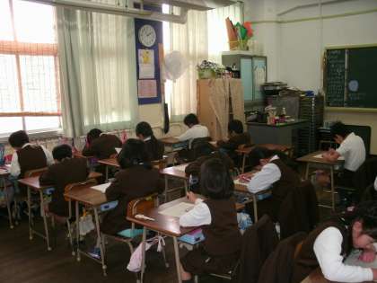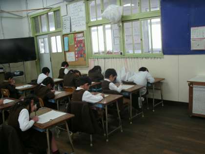 2年2組は、国語のテストをしていました。静かに集中して問題を解いていました。