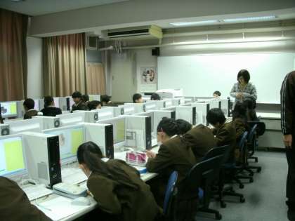 3年生は、パソコンルームで社会科の学習をしていました。昔の道具について調べています。