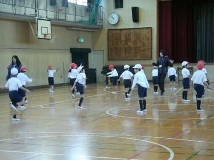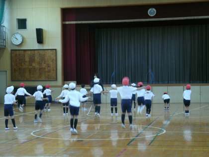 1年生は、体育館でなわとびをしていました。いろいろなとび方を練習しています。