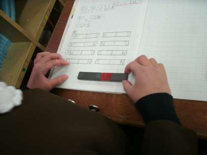 3年生は、理科の学習をしていました。2本の棒磁石を使ってN極とS極の関係について実験していました。