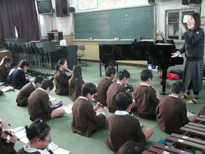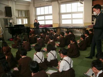 4年生は、音楽室でリコーダーの練習をしていました。バイオリン協奏曲四季より「春」の練習をしていました。