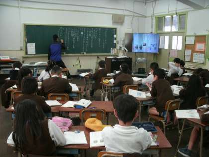 2年1組は、国語の学習をしていました。「あなのやくわり」で植木鉢の底のあなの役割について説明文を読み取っていました。