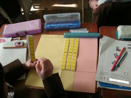 1年1組は、算数の学習をしていました。ブロックを使ってたしざんひきざんをあらわす学習をしています。