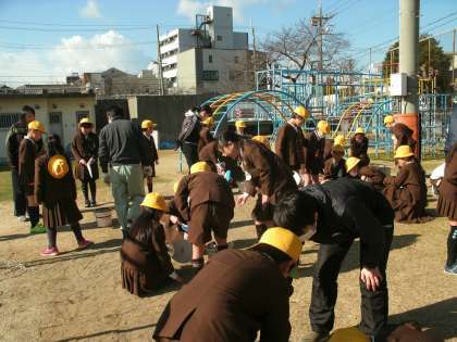 3年生は、校庭で「七輪体験」をしていました。上手に火をおこせるでしょうか。