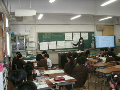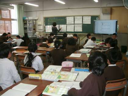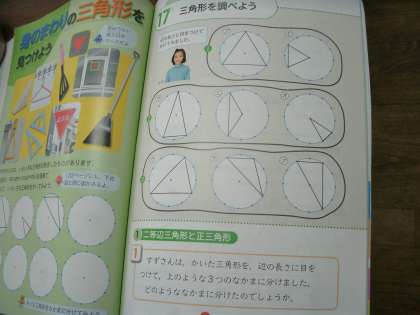 3年生は、算数の学習をしていました。いろいろな三角形を調べて仲間分けをしていました。