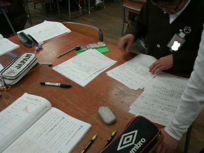 4年2組は、国語「報告します。みんなの生活」の学習をしていました。自分たちで作ったアンケートの集計作業を班で手分けして行っていました。