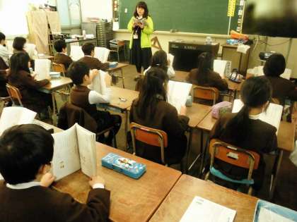 2年2組は国語の音読をしていました。足をしっかり床につけてよい姿勢で読みましょうと先生からアドバイスをもらうと、子どもたちはぴしっと背筋を伸ばしてよんでいました。2年1組は、参観の時間に進行する役割分担をしていました。
