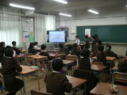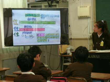 4年1組は、国語の学習をしていました。「報告します。みんなの生活」の発表を班ごとにしていました。自分たちで作ったアンケートの結果をまとめ考察していました。