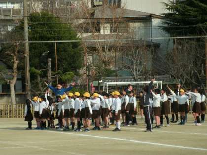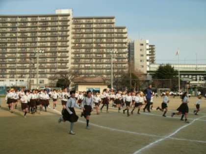 朝の駆け足タイムの様子です。5分間走った後、整理運動をして教室にもどります。手洗い・うがいを忘れずに。