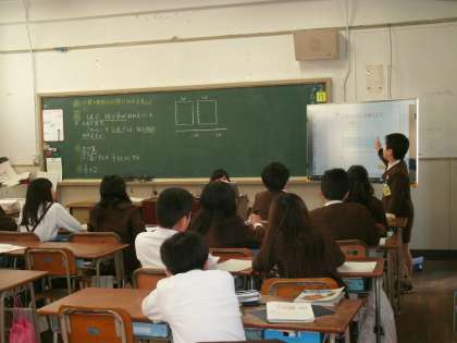 5年生は、習熟度別のクラスに分かれて算数の学習をしていました。分数と整数のかけ算の仕方について考えていました。