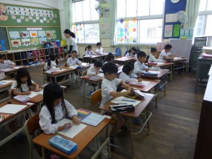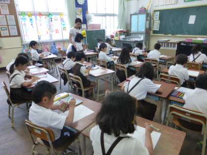 5月26日(月)今日は、朝から曇り空です。これから雨になるようです。1年生は、あさがおを育てています。生活科の時間に、あさがおを観察して、カードに記録していました。