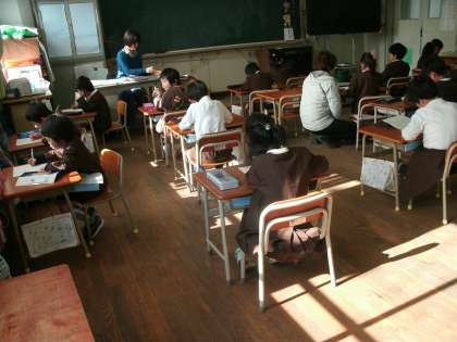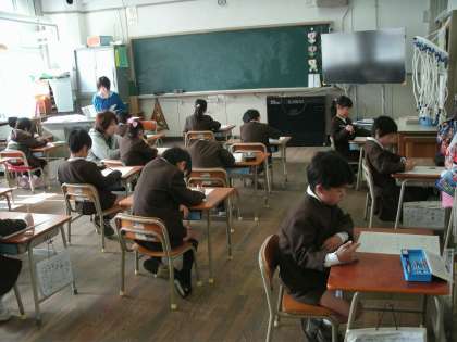 1年1組は、生活科のテストをしていました。集中して問題を解いていました。
