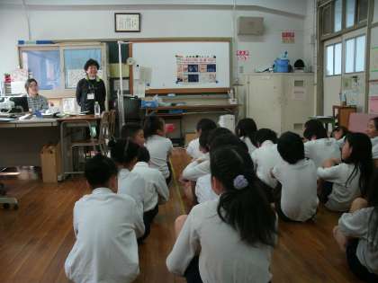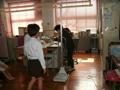 4年2組は、保健室で体重測定をしていました。今日は1年生と4年生が体重測定を行います。