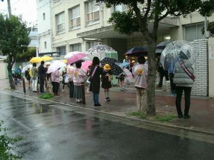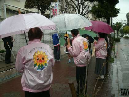 毎月第1・第3月曜日は、港区更生保護女性会の皆さんによる「愛の一声運動」が登校時に行われています。今月の第3月曜日は卒業式のため、今日が本年度最終となります。雨の中、子どもたちに声掛けをしていただきありがとうございました。来年度もどうぞよろしくお願いいたします。
