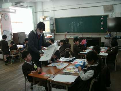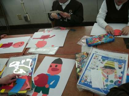 1年2組は、図画工作の学習をしていました。紙版画を作成中です。