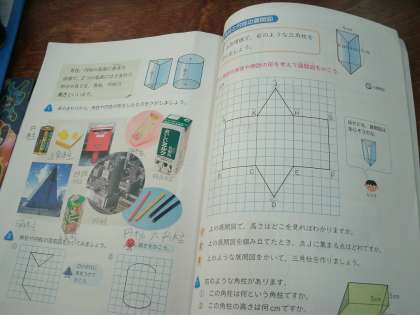 5年生は、算数の学習をしていました。角柱・円柱の見取り図と展開図について学習をしていました。