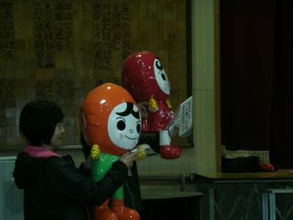 後半は、人権擁護委員のお二人から、人権の花を植えた1年生が代表して感謝状と人権イメージキャラクターのマスコット人形「人KENまもる君」と「人KENあゆみちゃん」をいただきました。
