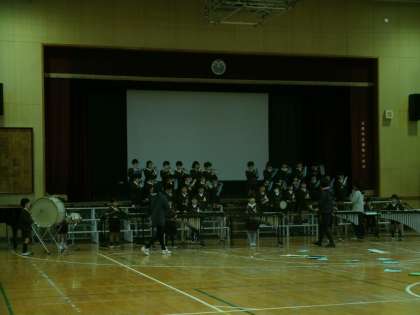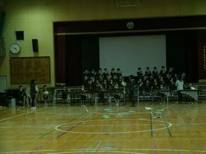 1年生は、合奏の練習を体育館でしていました。「となりのトトロ」を練習しています。