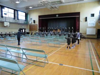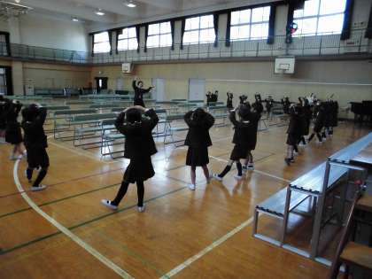 講堂にて4月6日の入学式で行う、新1年生を迎えるための演技の練習をしました。1年前は迎えられる立場で、小学校での生活に期待と不安でいっぱいだったと思いますが、今では小学校にすっかりなじみ、できることもたくさん増えて本当に成長したなあと思います。やさしいお兄さんお姉さんとして、新1年生が学校になじめるように接してくれることでしょう。