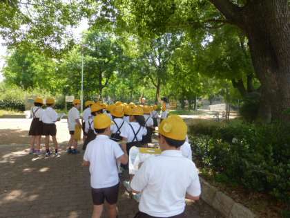 2年生は、生活科の学習で、町たんけんに出かけました。磯路中央公園からスタートして、校区内の町を歩きました。