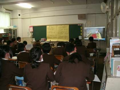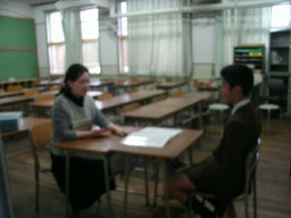 6年生は、小学校生活最後の通知表を担任の先生からひとりひとり受け取っていました。待っている児童は、教室でビデオ鑑賞をしていました。