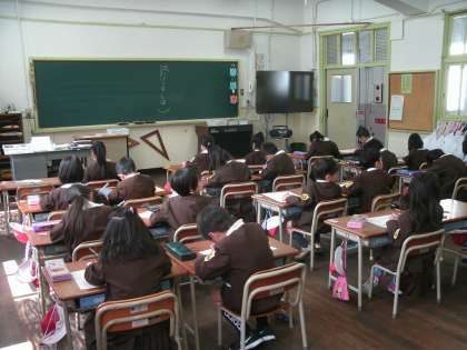1年1組は、鉛筆の正しい持ち方を学習した後で、点線のなぞり書きをしました。集中して書いていました。