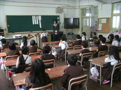 1年1組は、自己紹介をしていました。ひとりづつ前に出て、自分の名前と好きな食べ物を発表していました。