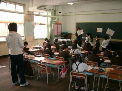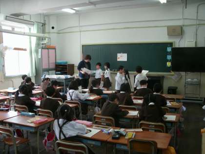 1年2組も、図画工作をしていました。仕上がった人は担任の先生に見てもらいます。