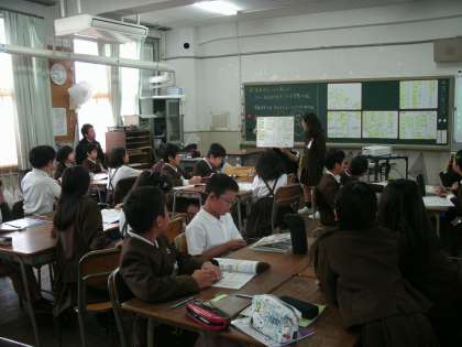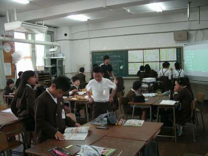 5年2組は、初めての家庭科の学習をしていました。教科書のキーワードから家庭科の学習内容をいくつかのカテゴリーに分けます。班ごとに分け方の発表をし、理由を聞いてから家庭科の学習について、全員で考えていきます。
