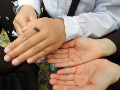 生活科では学校たんけんをしています。今日は学習園に行きました。ダンゴムシを捕まえたり、花を見たり楽しく活動しました。楽しみながら学校の様々な場所を覚えているところです。