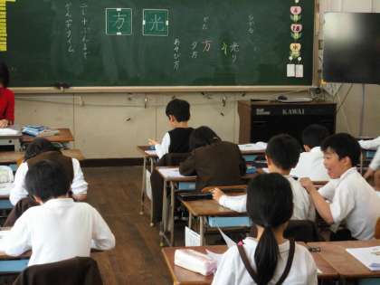 5時間目、1・2組ともに新出漢字を覚える学習をしました。書き順や使い方など確認した後、漢字の練習をしました。先生は机の間を歩きながらアドバイスしていました。しっかり身につけてほしいと思います。