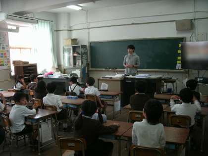 2年2組は、学校たんけんの準備のため、いろいろな部屋の確認をしていました。1年生をしっかりと案内できるように、確認していました。教室にもどって担任の先生の話を聞いているところです。