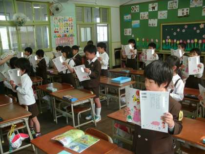 1年2組は、国語の学習をしていました。「よろしくね」を元気な声で音読していました。
